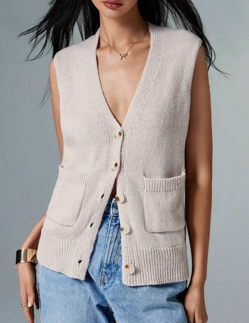 Vestă tricotată Shein, bej