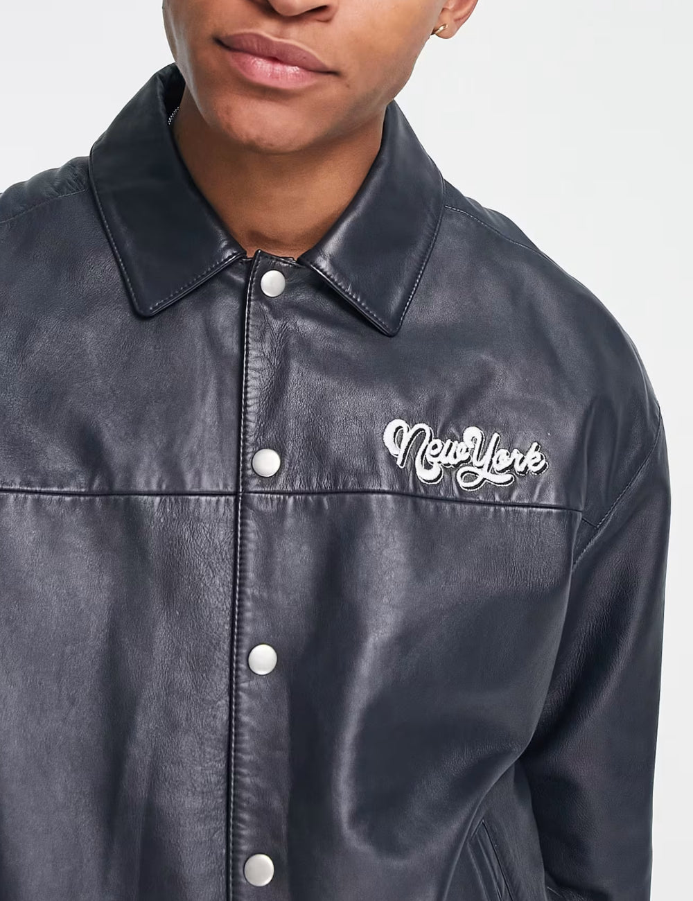 Jachetă de piele ASOS, neagră