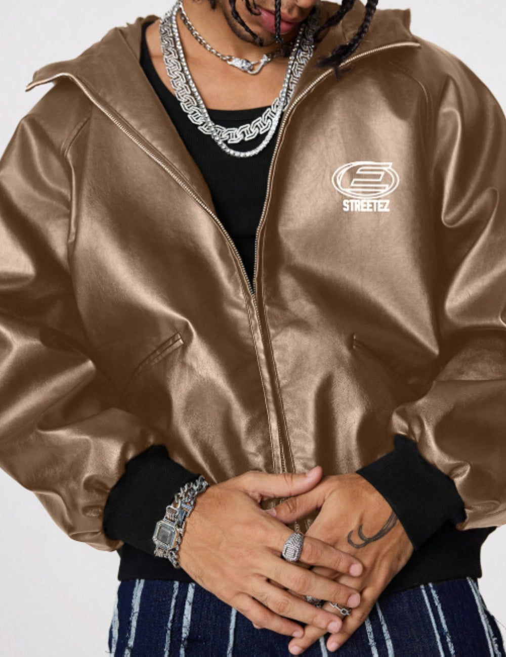 Jachetă imitație de piele Shein MANFINITY, maro