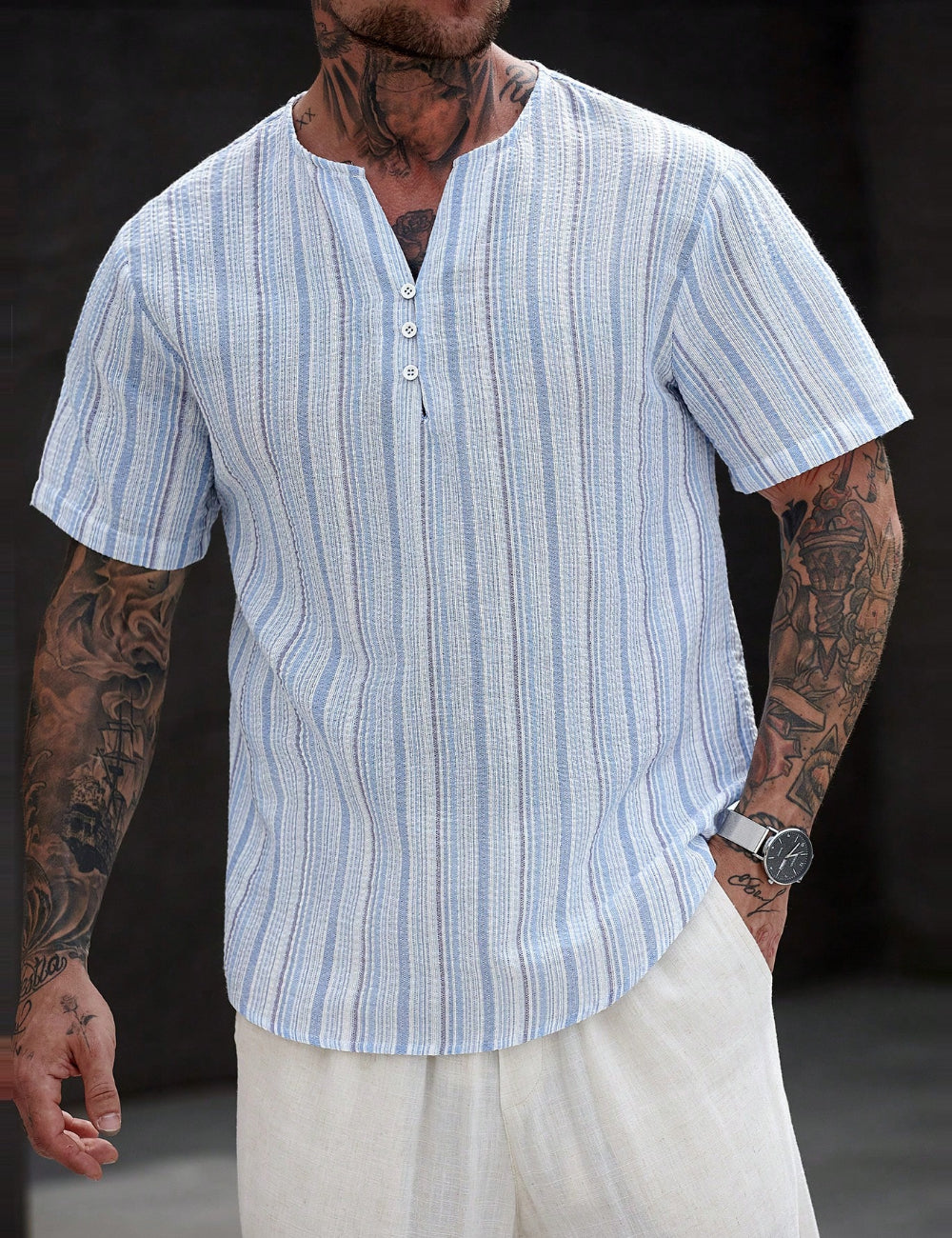 Cămașă cu mânecă scurtă MUSERO by Shein, albastru