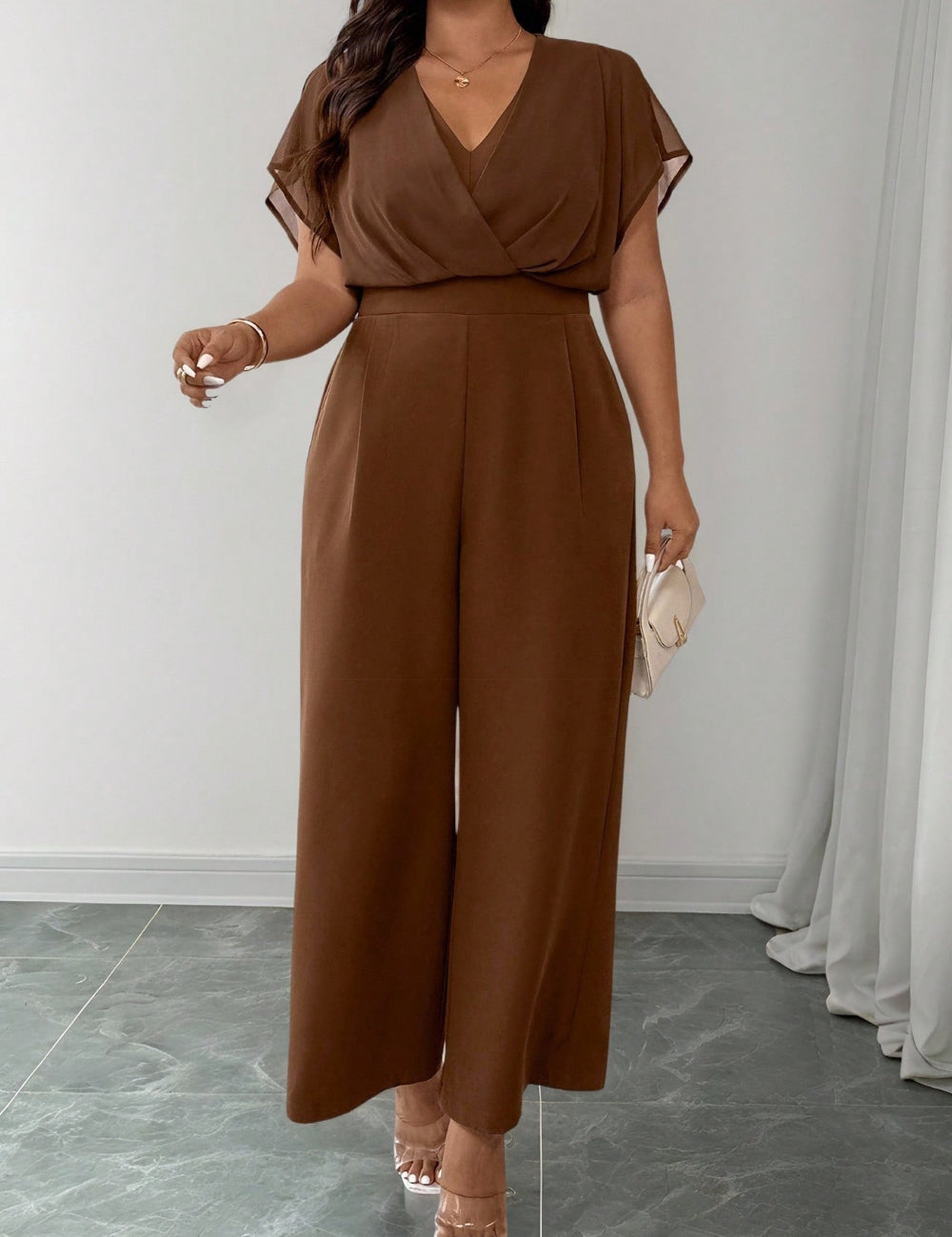 Salopetă lungă Shein Curve+, maro
