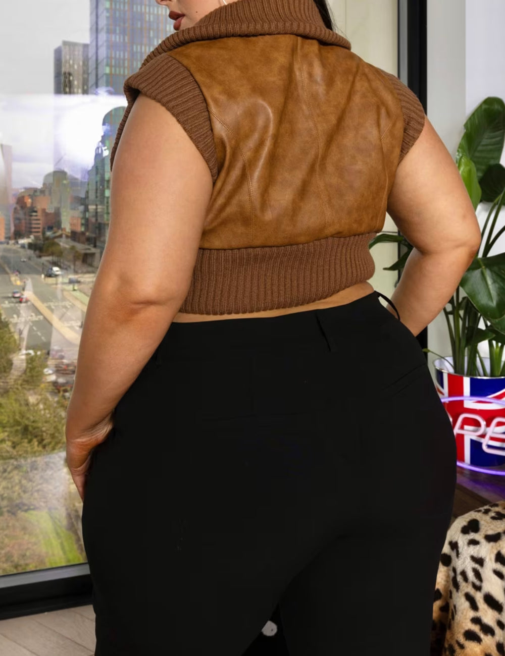 Sacou imitație de piele Shein, mix culori